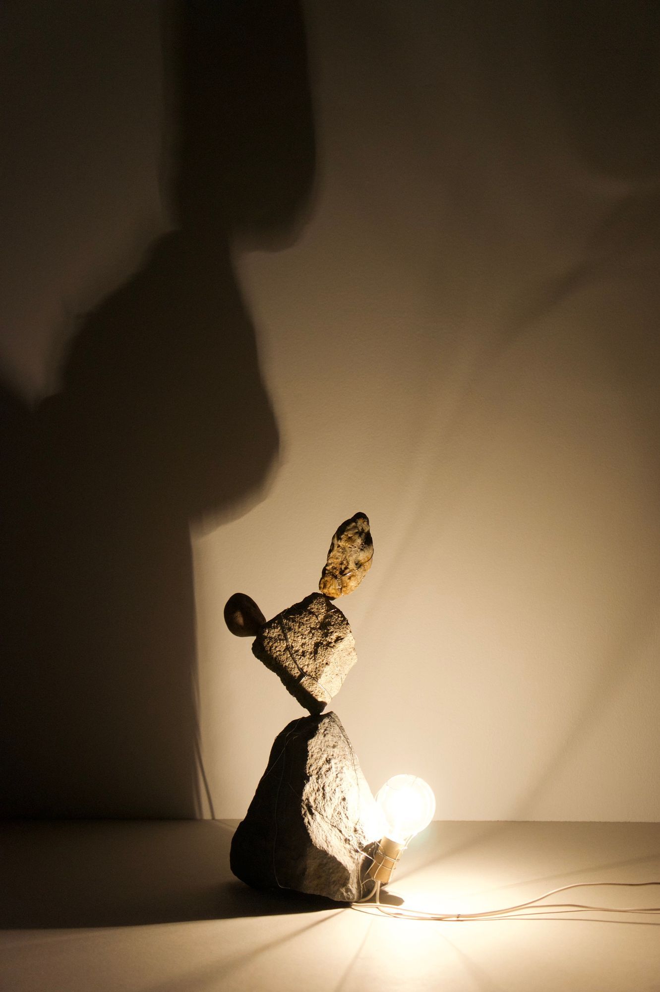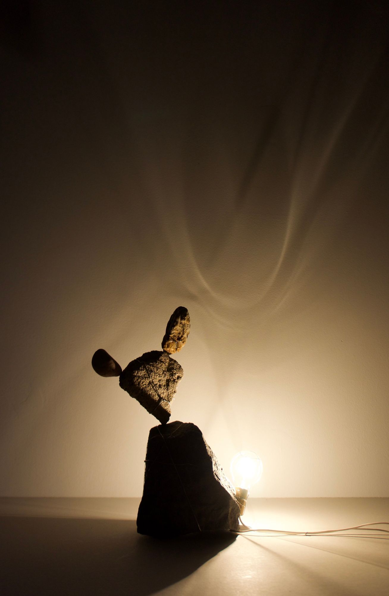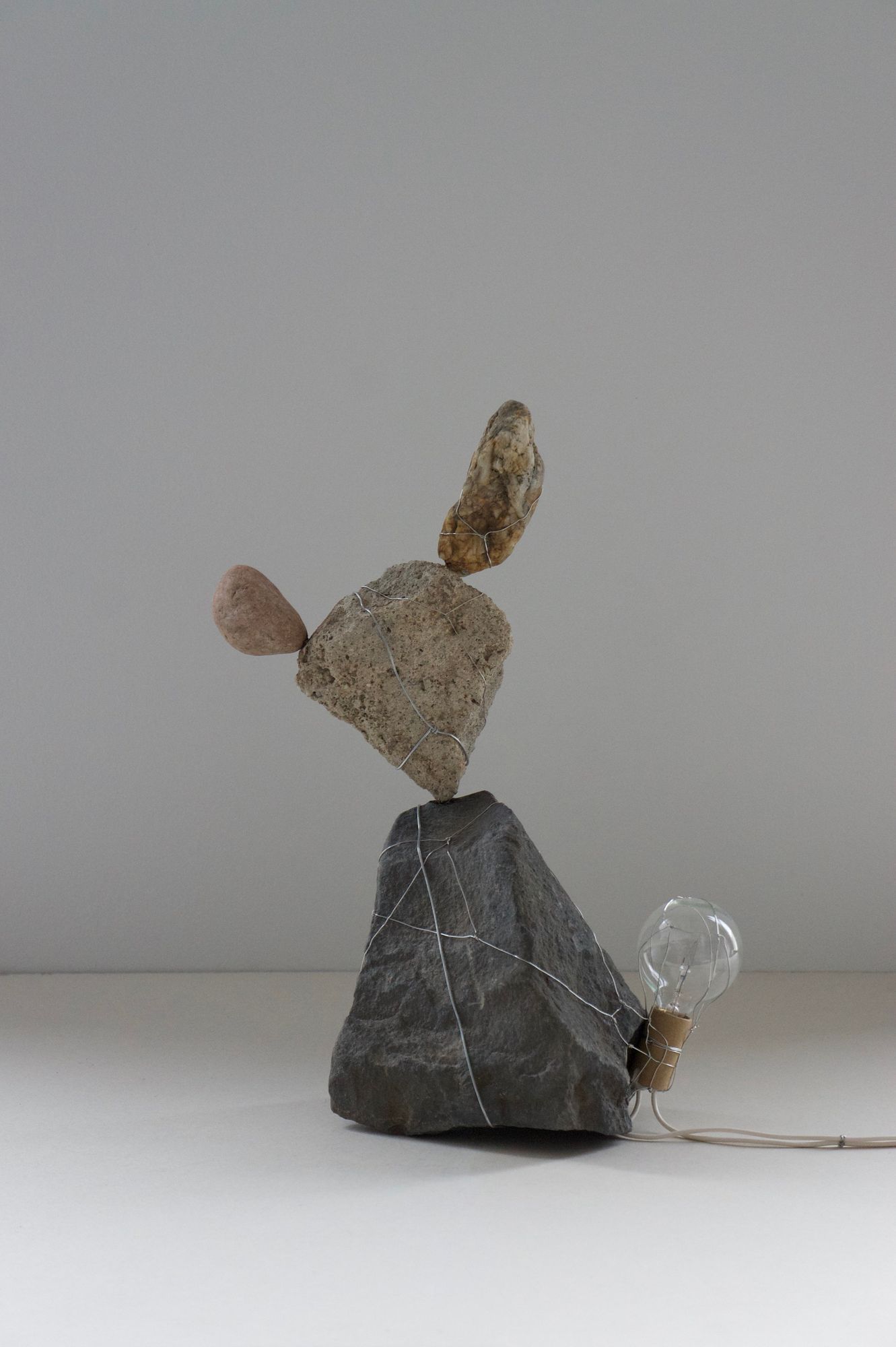 rocks, incandescent light bulb, stainless steel wire, electrical wire, hardware