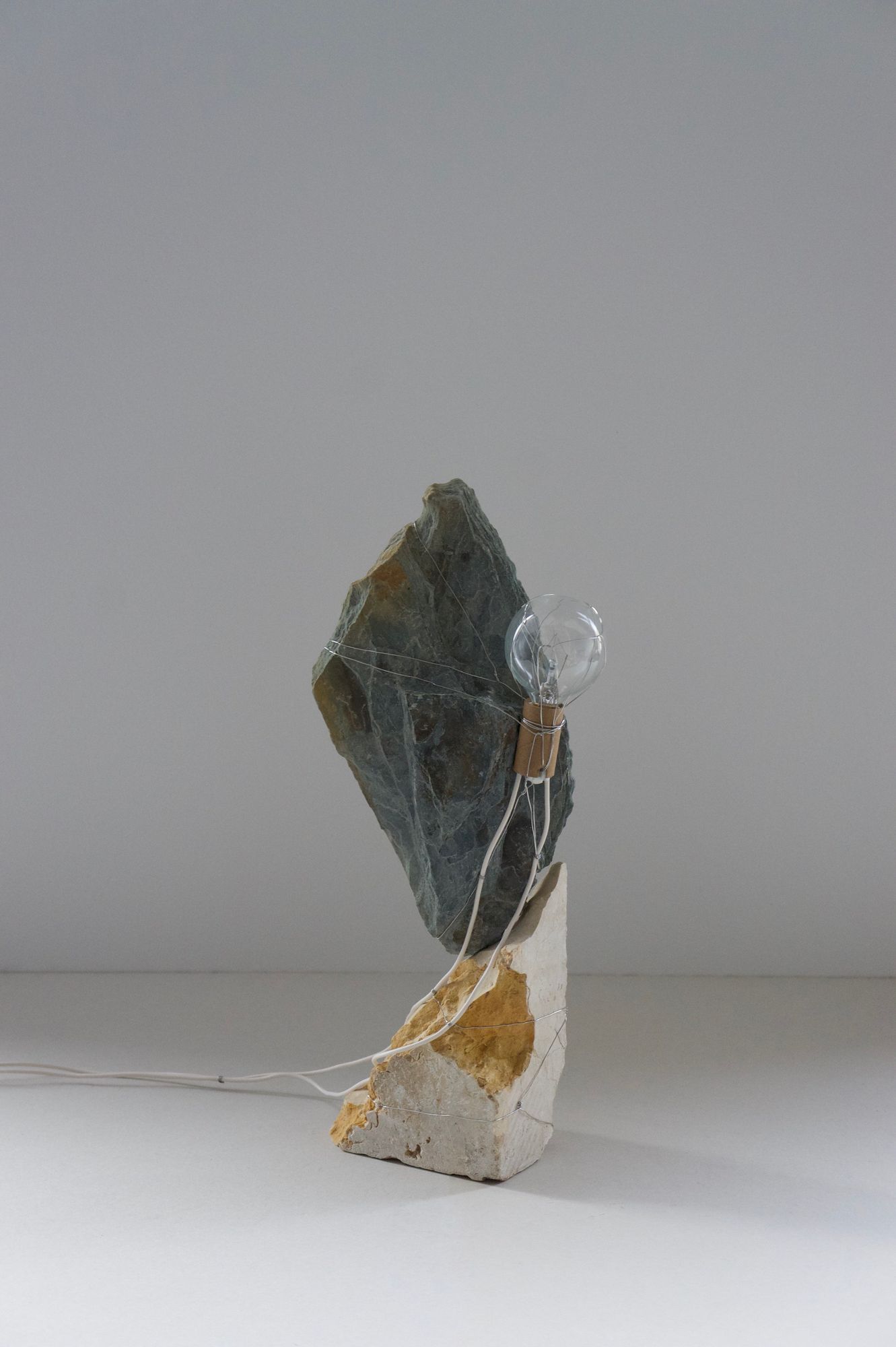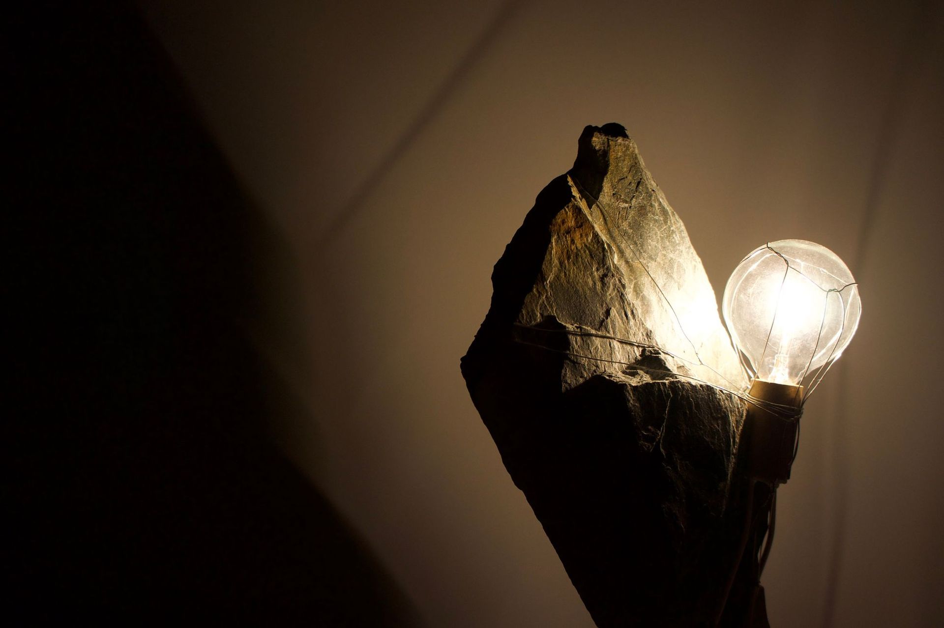 rocks, incandescent light bulb, stainless steel wire, electrical wire, hardware